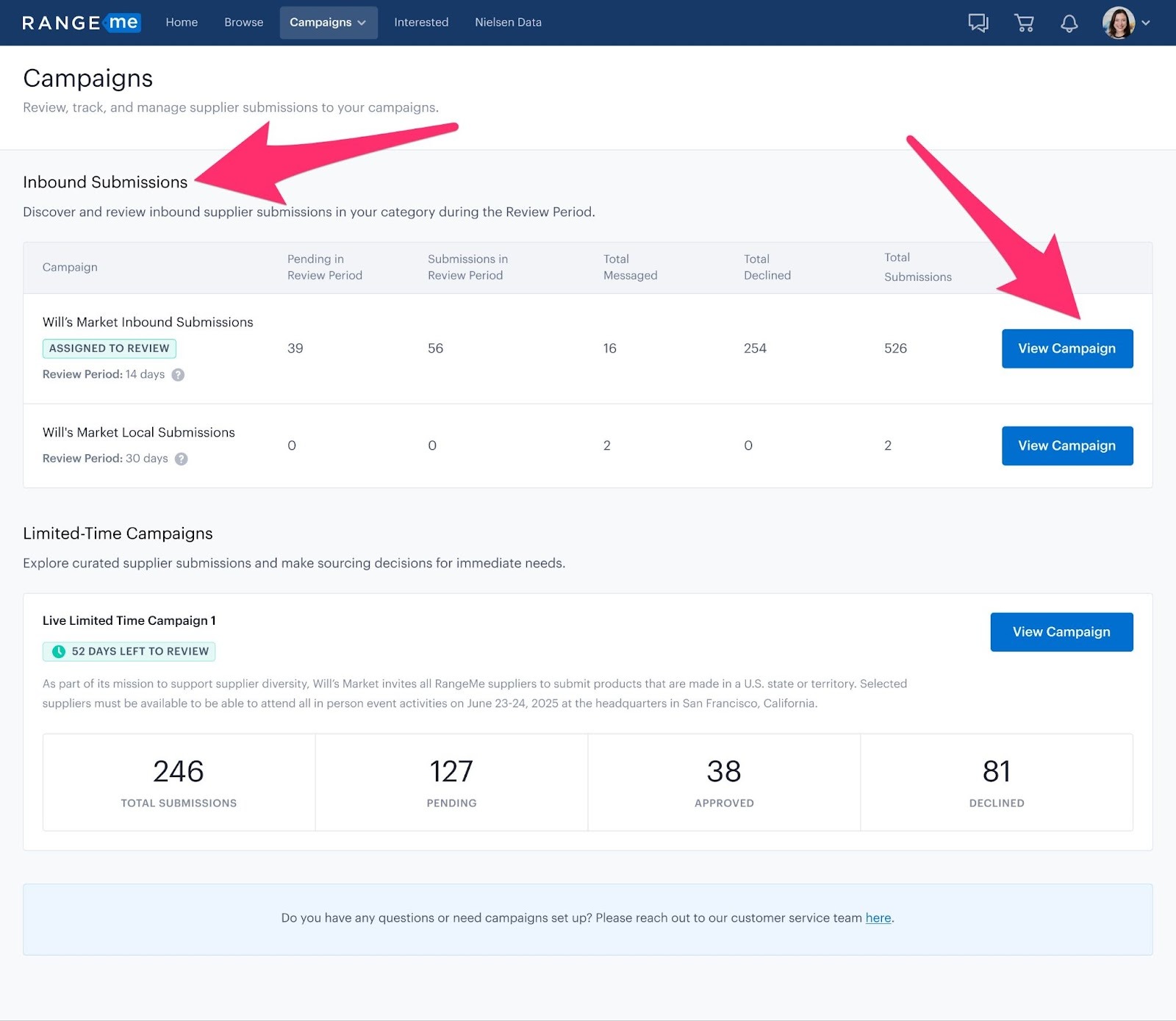 - Click the blue View Campaign button in your Inbound Submissions section to begin.