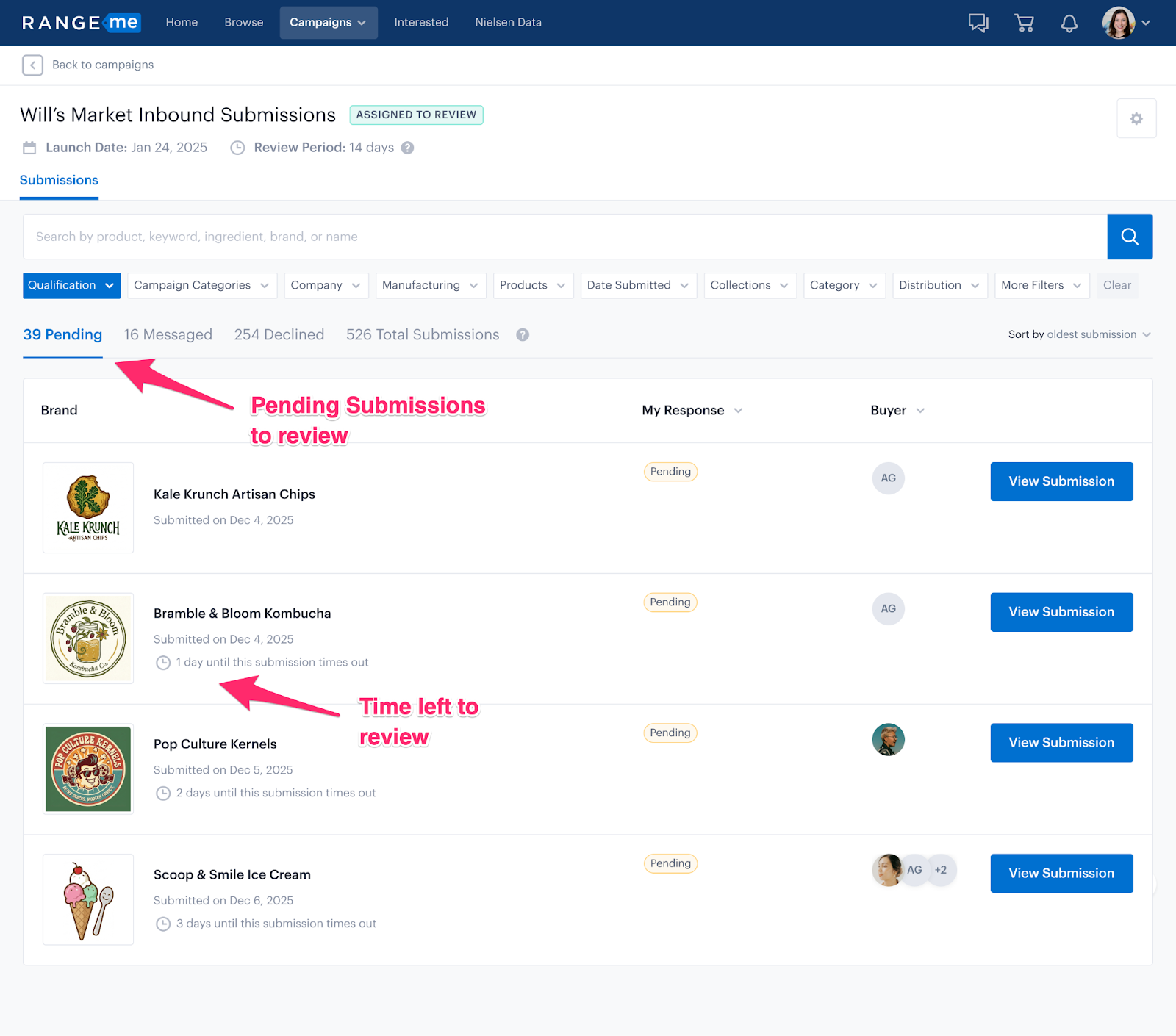 Once inside the campaign, you will see a list of brands awaiting your review. Some important things to highlight: