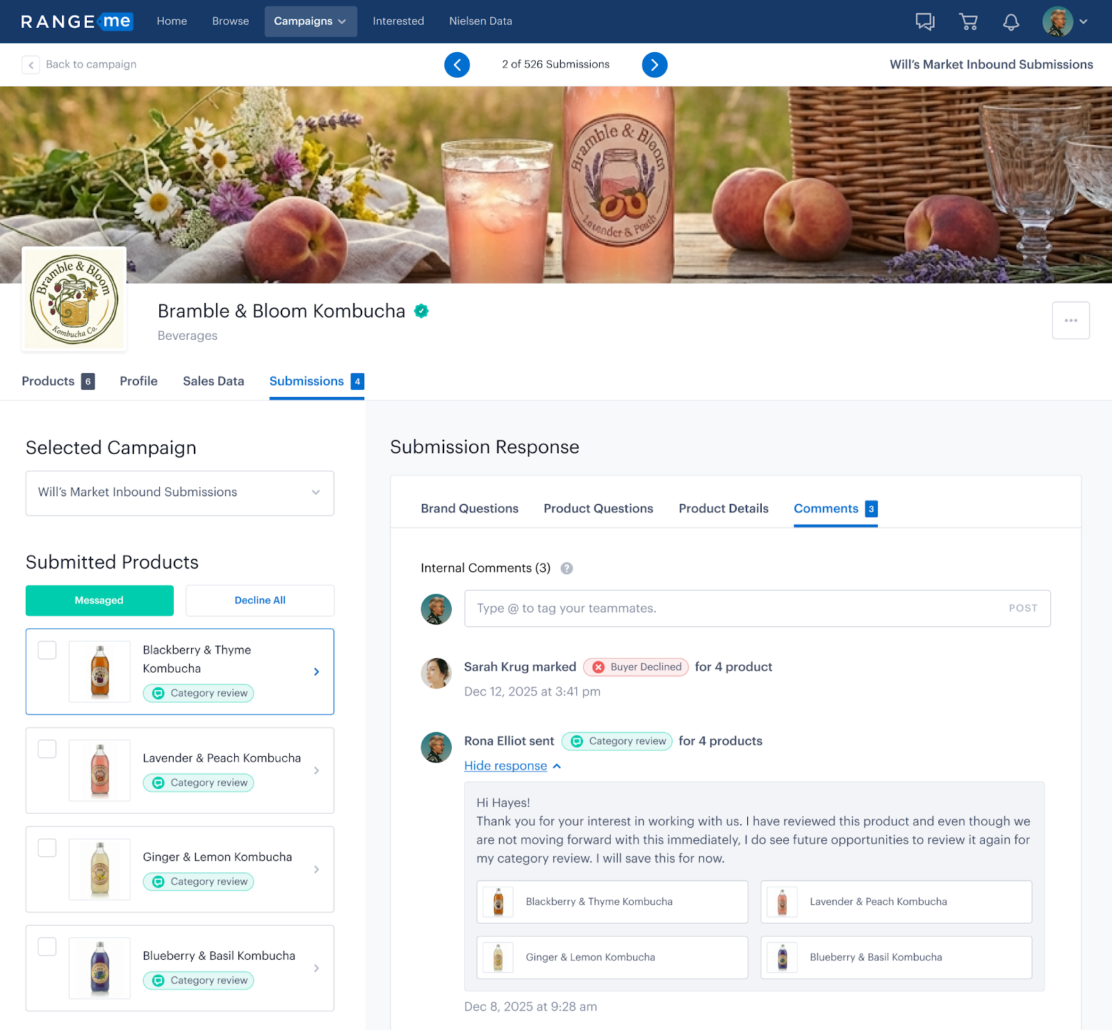 - If all products in a submission are declined, the brand will automatically move to your Declined tab.