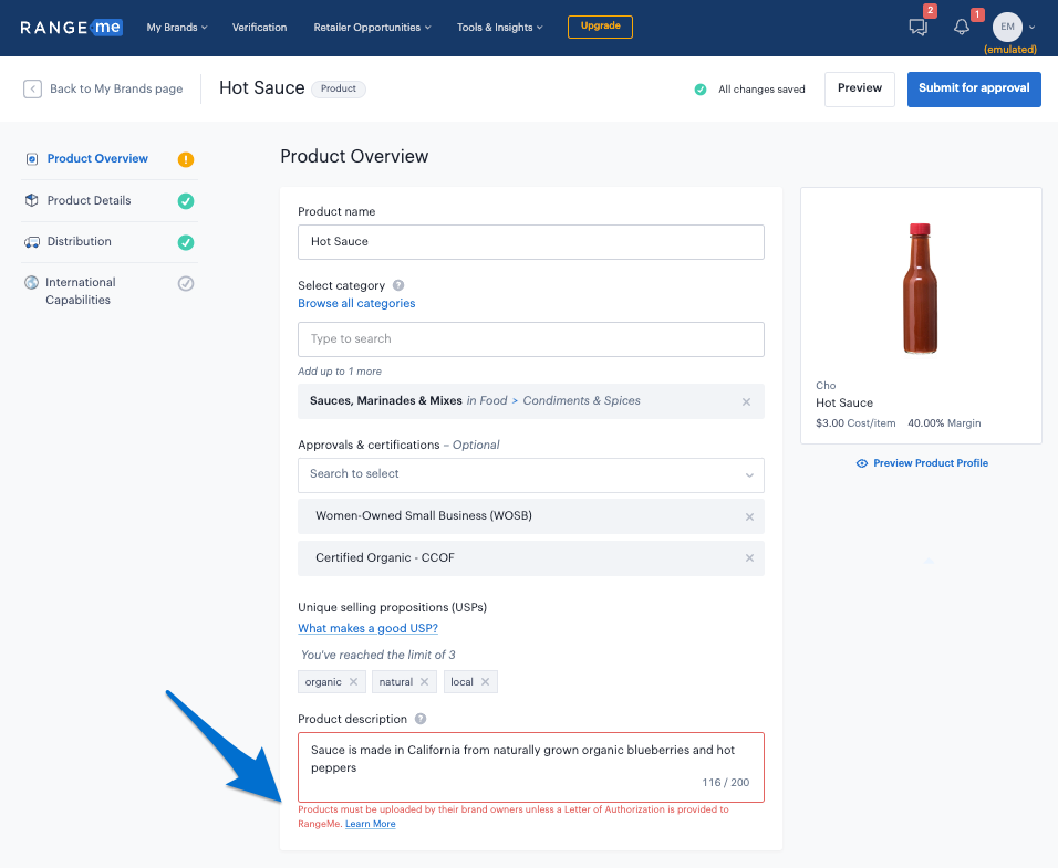 Para solucionarlo, se le solicitará que proporcione una carta de autorización de la entidad que posee la marca que está intentando representar.