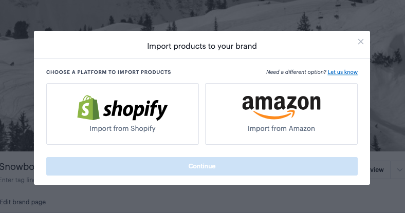 Importer vos produits est une alternative à la création manuelle de vos produits sur RangeMe. Les fournisseurs peuvent désormais importer des produits directement depuis leur boutique Shopify ou Amazon vers leur profil RangeMe, et peuvent importer jusqu'à 20 produits à la fois ! Cependant, notez que vous ne pourrez lier qu'une seule boutique de chaque plateforme à votre compte RangeMe.