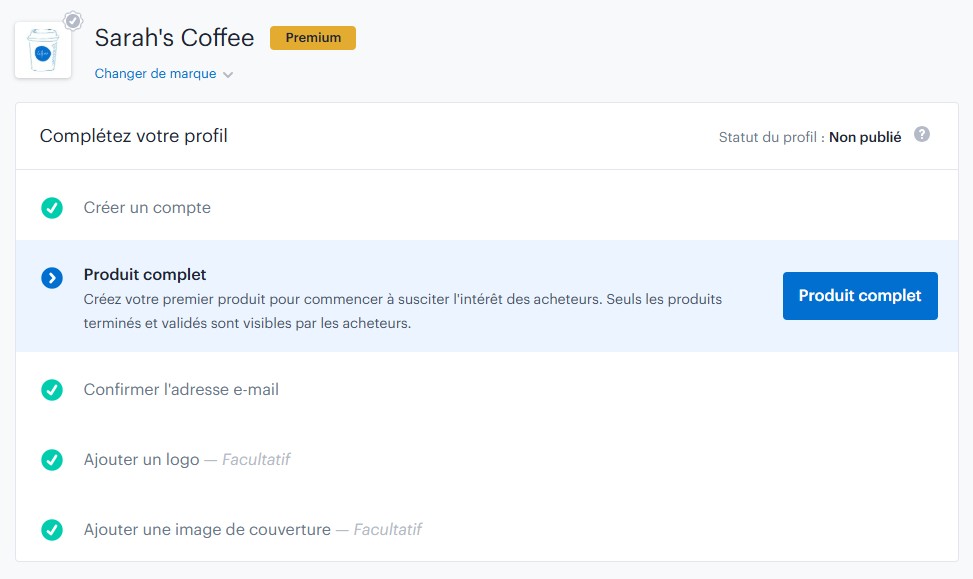 Si vous avez plus d'une marque, il vous suffit de sélectionner « Changer de marque » sous le nom de votre marque dans le coin supérieur gauche de la page pour afficher une autre marque.